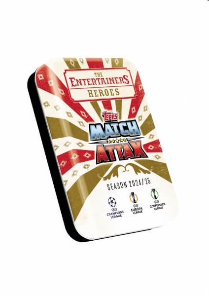Booster tin Heroes obsahuje 28 kariet Match Attax a 3 exkluzívne karty „Heroes“ z limitovanej edície - Harry Kane, Kobbie Mainoo a Federico Chiesa.