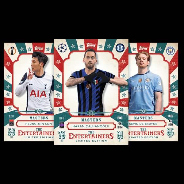 Booster tin Masters obsahuje 28 kariet Match Attax a 3 exkluzívne karty „Masters“ z limitovanej edície - Hakan Çalhanoglu, Kevin De Bruyne a Heung-min Son.