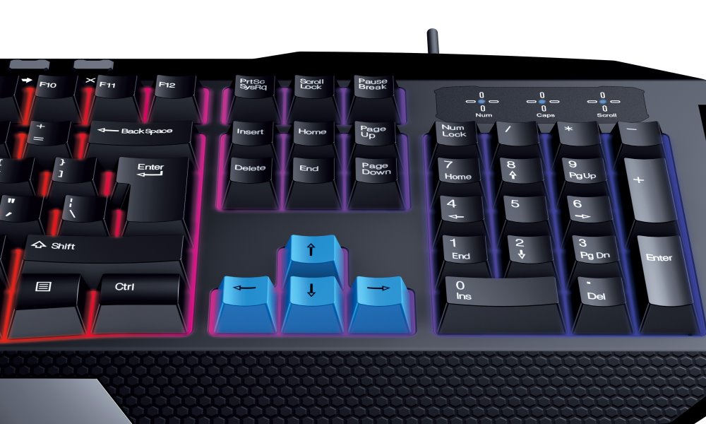 Herní klávesnice s efektním podsvícením.