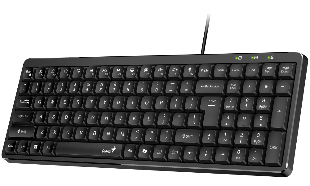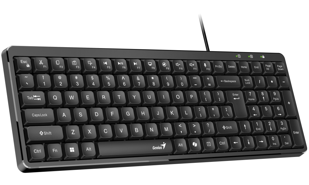 Klávesnice Genius LuxeMate 120 kombinuje stylový design s pohodlnými retro klávesami ve stylu psacího stroje a praktickými zkratkovými tlačítky pro moderní produktivitu. Dedikovaná oblast rychlých kláves zahrnuje funkce pro Copilot AI (včetně aktivace mikrofonu), editační nástroje jako Cut, Copy, Paste a SniPaste a kompletní ovládání médií.