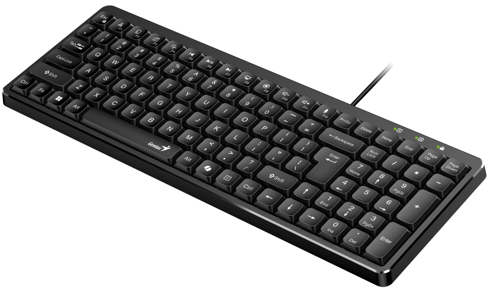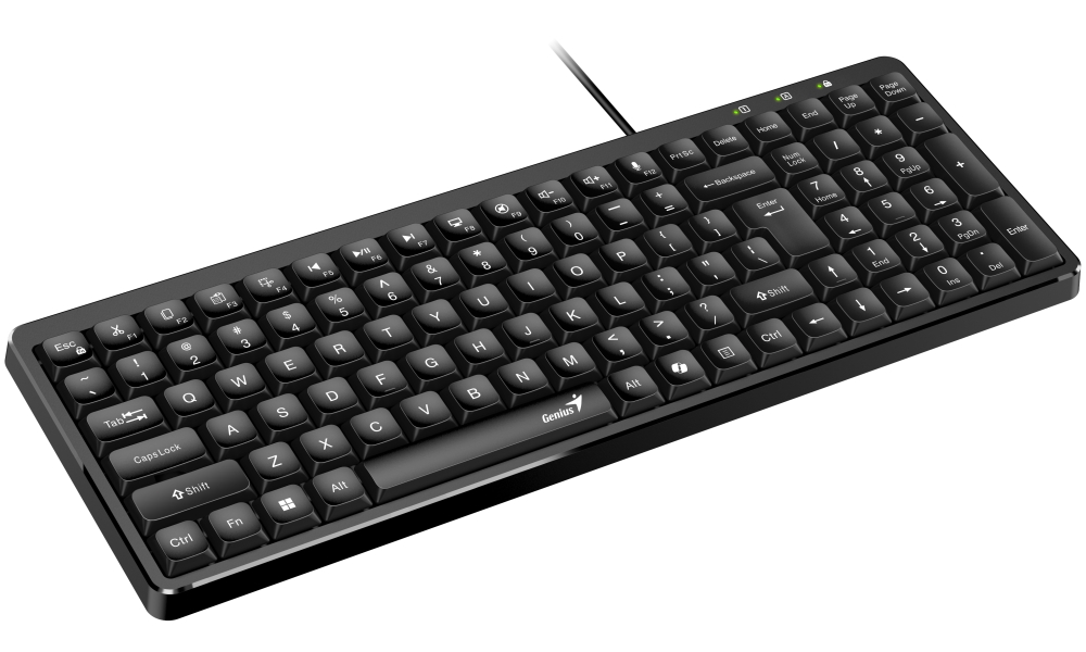 Kompaktní drátová klávesnice s numerickou částí, retrohlavicemi a dedikovanými klávesami pro Copilot AI, editaci dokumentů a ovládání médií. USB připojení plug-and-play, kompatibilní s Windows a macOS.