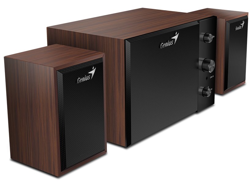Genius SW2.1 350; Dřevěný reproduktorový systém v konfiguraci 2.1 s celkovým výkonem 15 W . 4" subwoofer nabízí dokonale hluboké basy a dva 2" satelity zajistí vysoké vokály. Na předním panelu se nachází...