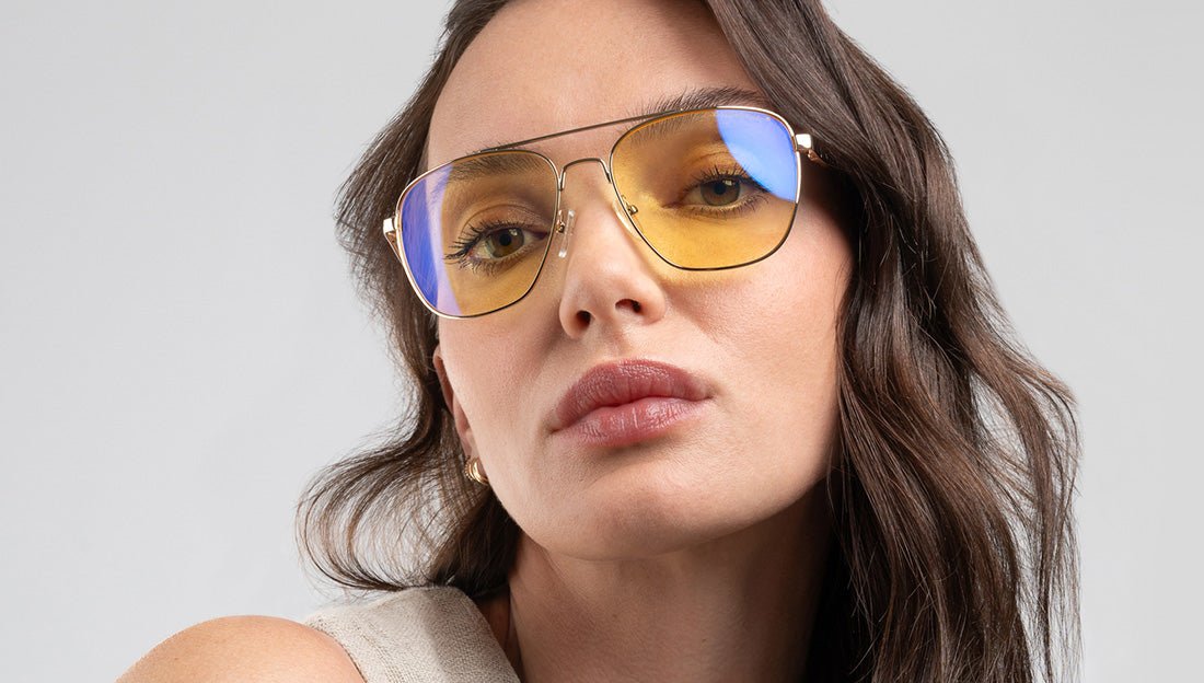 GUNNAR MUSTANG GOLD; Kancelářské brýle s čirými skly a jedinečným designem, určené zejména pro venkovní nošení či práci na počítači ve velmi světlém prostředí. Blokují 35 % modrého světla a 100 % ultr...