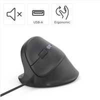 - moderná ergonomická káblová myš pre prácu s počítačom bez bolesti - vertikálne prevedenie predchádza presileniu a bolesti ramien a zápästí - tichá, bez zvukov pri klikaní pre nerušenú prácu - DPI tlačidlo pre zmenu rozlíšenia (1000/1400/1800 DPI) - aktivácia AI asistenta v systéme tlačidlom - tlačidlá s funkciou späť/vpred v prehliadači - pogumovaný povrch myši a kolieska - polymerové kĺzne plochy - dlhý kábel s pripojením k USB-A alebo USB-C zásuvke (integrovaný adaptér) - telo a tlačidlá sú vyrobené z 65% recyklovaného ABS plastu - balenie je 100% bez plastov Systémové požiadavky: - bežné funkcie: Windows 11/10, Mac OS 11 alebo novšie - tlačidlo Assist: Windows 11 s aplikáciou Microsoft Copilot Technické parametre: - pripojenie: USB-A vidlica, USB-C vidlica - počet tlačidiel: 7 vrátane rolovacieho kolieska - rozlíšenie: 1000/1400/1800 DPI - dĺžka kábla: 1,8 m - rozmery: 8,6 x 11,5 x 7,1 cm - hmotnosť: 110 g - farba: čierna