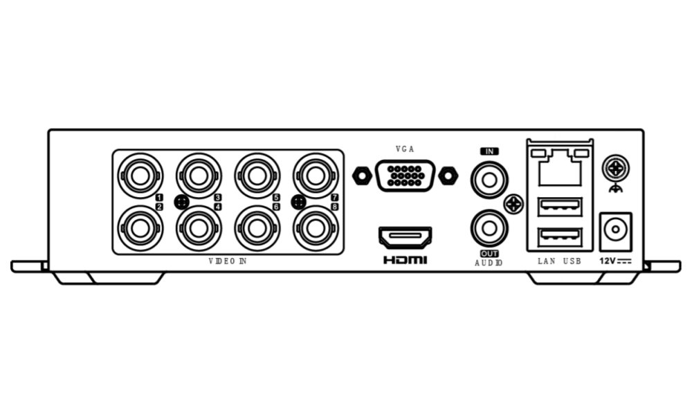 Porty: 8x BNC, 1x HDMI, 1x VGA, 1x audio vstup, 1x audio výstup, 2x USB 2.0, 1x RJ-45