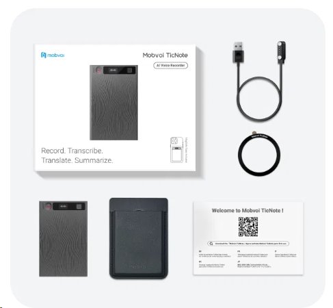 Obsah balenia Mobvoi TicNote (AI digitálny záznamník) Magnetické puzdro/obal (na prichytenie k telefónu) Magnetický krúžok (pre telefóny bez MagSafe) Magnetický nabíjací kábel Stručný návod (Quick Guide)
