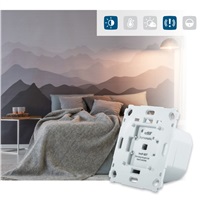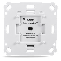 Programovateľný bezdrôtový Stmievací akčný člen (HmIP-BDT) pre zápustnú montáž, napájaný zo siete 230 V, je súčasťou systému inteligentnej domácnosti Homematic IP.