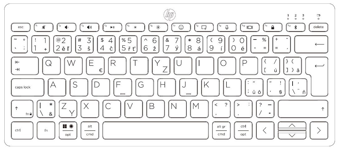 HP 350 Kompaktní klávesnice Bluetooth pro více zařízení (692S8AA) Nepíše se vám lépe na externí klávesnici? Tato bezdrátová klávesnice kombinuje produktivitu stolního počítače s kompaktní přenosností, ať jste kdekoli, díky funkcím, jako je Bluetooth 5....