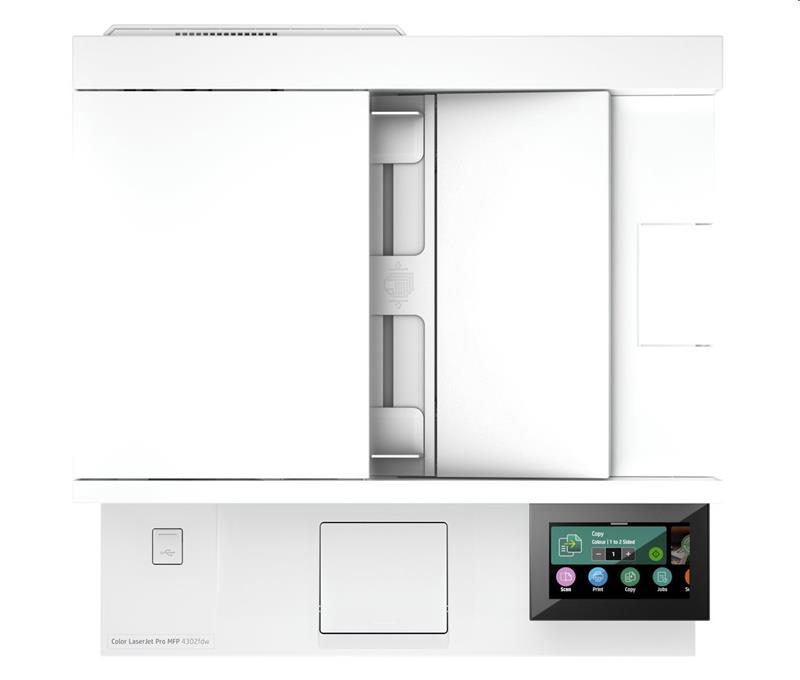 Tlačiareň HP Color LaserJet Pro MFP 4302fdw - lač, kopírovanie, skenovanie, faxovanie, Formát tlačiarne: A4, Rozlíšenie [DPI]: Až 600 x 600 dpi, Rýchlosť čiernej tlače [str/min]: Až 33 str./min, Rýchlosť farebnej tlače [str/min]: Až 33 str./min, Tlač prvej strany [sec]: Už za 7,6 s, Max. mesačné zaťaženie [str]: Až 50 000 strán, Pamäť [MB]: 512 MB NAND Flash, 512 MB DRAM, Obojstranná tlač: Automatická obojstranná tlač, Automatický podávač pre skenovanie: áno, 1x Hi-Speed USB 2.0 (zariadenie); 1x Hi-Speed USB 2.0 (hostiteľ); 1x predný port USB; 1x Wi-Fi 802.11b/g/n; 1x Bluetooth Low Energy; 1x sieťový port Gigabit Ethernet 10/100/1000 Base-TX, rozmery: 421 x 435 x 384 mm, váha: 21,4 kg