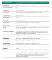 Prevedenie servera:1U Rack; Typ procesora:Intel 6 Core Xeon; Počet slotov PCIe:2; Hot-plug cage pre HDD:2.5" SFF; RAID:1, 5; Počet inštalovaných HDD:2; Výška servra:1U