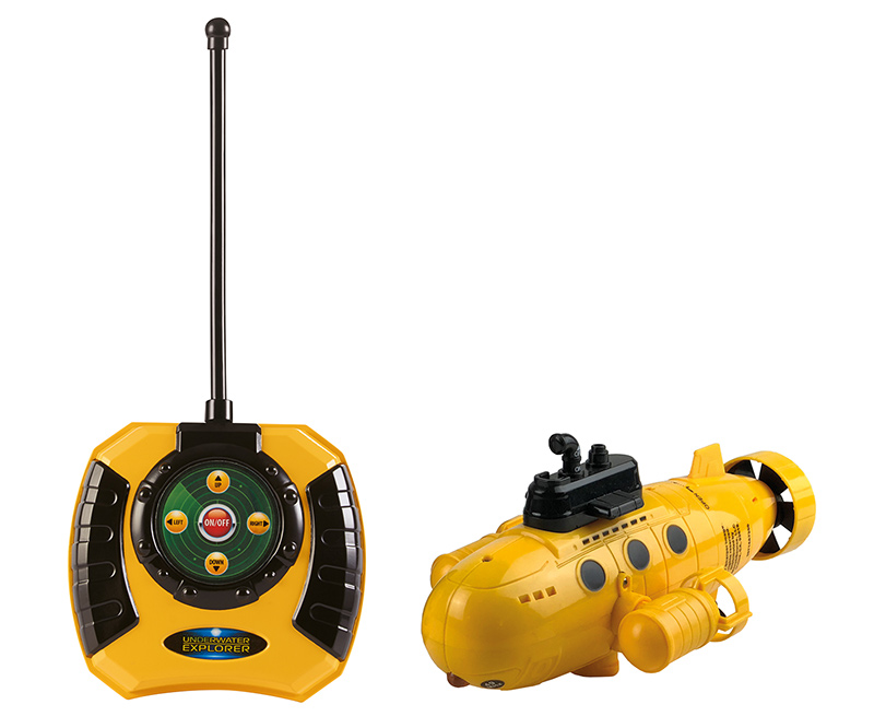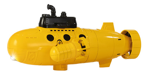 Žltá ponorka do vody, diaľkové ovládanie s frekvenciou 27 MHz a dosahom až 12 metrov, pohyb všetkými smermi, predné svetlo. Napájanie batériami 4x AA + 1x 9V (nie sú súčasťou balenia).