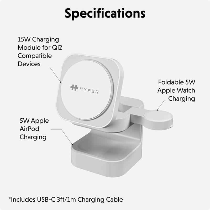 Hyper HyperJuice Qi2 3-in-1 Magnetic Charging Stand - White HJ3320WHGL