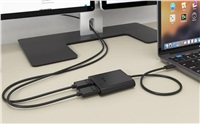 Rozšiřte svůj stolní počítač o dva externí monitory DP nebo připojte projektory či televizi k notebooku, tabletu nebo počítači prostřednictvím nového konektoru USB-C nebo Thunderbolt 3