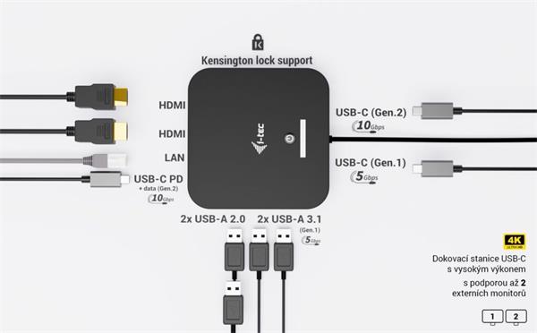 Technologie dokovací stanice: USB-C (MST) + USB-C Power Delivery