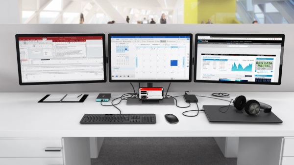 Kancelářská dokovací stanice USB-C, která podporuje až 2x externí monitor v rozlišení 4K. Stanice je kompatibilní s jakýmkoliv notebookem vybaveným portem USB-C nebo Thunderbolt 3. 6x USB port, spolehlivé a rychlé připojení do podnikové sítě díky integ...