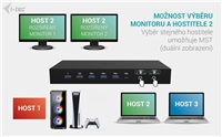 Vstupy videa: 2× HDMI 2.0 (PC1) + 2× USB-C (PC2, PC3)