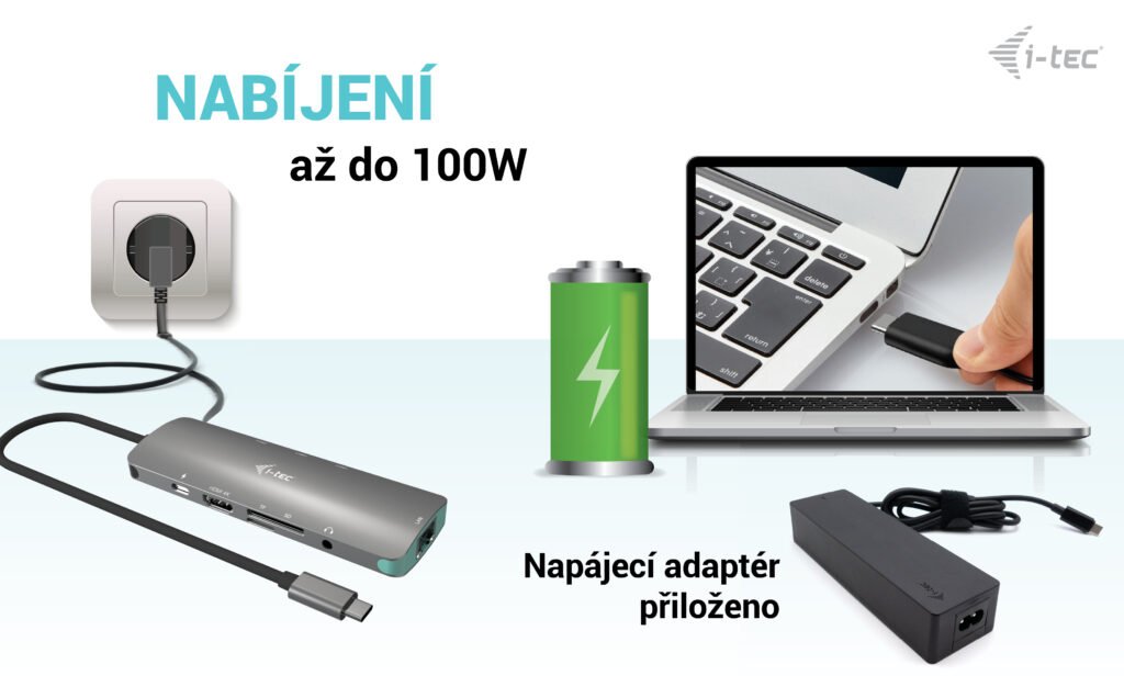• Rozšiřte svou pracovní plochu o externí HDMI monitor nebo připojte projektor či televizor s HDMI rozhraním • Konstrukce z broušeného hliníku zajistí dostatečnou odolnost dokovací stanice i při častém cestování. • Dokovací stanice podporuje přenos Ultra HD 4K videa s rozlišením až 4K/60Hz včetně audio signálu. • 3x USB 3.2 Gen1 (5 Gbps) vám umožní snadné připojení vašich USB zařízení a periferií. • GLAN Ethernet podporuje síťové rychlosti 10/100/1000 Mb/s, což poskytuje robustní a vysokorychlostní připojení k internetu. • Kombinovaný 3.5mm audio/mic port dokáže připojit například integrovaná sluchátka s mikrofonem • Dokovací stanice podporuje až 100 W napájení připojenému notebooku nebo tabletu Poznámka: 100W napájecí zdroj je součástí dodávky. Dokovací stanici lze používat také s napájecím zdrojem USB-C dodávaným s notebookem, takže je k dispozici jako samostatná položka, P/N C31NANODOCKLANPD. Rozšiřte svou pracovní plochu o externí HDMI monitor nebo připojte projektor či televizor s HDMI rozhraním. Dokovací stanice podporuje přenos Ultra HD 4K videa s rozlišením až 3840×2160@60Hz včetně audio signálu. Stanice taktéž nabízí USB-C Power Delivery až 100 W, který je určen pro napájení připojeného notebooku či tabletu pomocí vašeho originálního síťového adaptéru. Dokovací stanice rovněž podporuje nabíjení připojených USB mobilních zařízení, jako jsou smartphony, čtečky e-knih, multimediální přehrávače, navigace a tablety. K dispozici budete mít taktéž 3x USB 3.2 Gen1 (5 Gbps) port, 1x Ethernet GLAN RJ-45 port, 1x USB-C Power Delivery port, 1x Combo audio jack (sluchátka a mikrofon), 1x čtečku SD karet a 1x čtečku microSD karet. Dokovací stanici připojíte jediným kabelem (30 cm) do USB-C, USB4 nebo Thunderbolt 3/4 portu počítače a můžete ji začít okamžitě využívat. Instalace ovladačů je automatická ze systému. Tato dokovací stanice je vhodná pro použití se všemi notebooky a dalšími zařízením, které jsou vybaveny USB-C konektorem s podporou přenosu video (USB-C DisplayPort Alt mode). V případě nekompatibility nemusí váš nový produkt i-tec fungovat správně. K dokovací stanici je rovněž přiložen napájecí adaptér USB-C o celkovém výkonu 100 W (USB-C port: 100 W) Specifikace DOKOVACÍ STANICE • 1x integrovaný USB-C kabel pro připojení k zařízení (30 cm) • Technologie dokovací stanice: USB-C • Power Delivery: až 100W • Video port: 1x HDMI • Rozlišení: Hostitelské zařízení s podporou DisplayPort 1.2 : • 1 monitor – 1x HDMI › až 4K/60Hz • 1 monitor – 1x HDMI › až 1080p/120Hz • 1x USB-C port PD (pouze power delivery) • 3x USB 3.2 Gen1 (5 Gbps) port • 1x Ethernet GLAN RJ-45 port (Realtek RTL8153) • 1x SD slot • 1x microSD slot • 1x 3,5mm Combo Audio port • Klonování MAC adresy: ano (za použití software i-tec Docker Pro) • WOL: S1, S2, S3 • OS: Windows 10/11, macOS, iPadOS**, Android**, Chrome OS a Linux s nejnovějšími aktualizacemi • Rozměry produktu: 130 x 43 x 15 mm • Hmotnost produktu: 85g UNIVERZÁLNÍ USB-C NABÍJEČKA • Výstupní výkon (max.): 100 W • Účinnost: více než 89 % • Výstupní napětí USB-C: DC 5 V / 9 V / 12 V / 15 V / 20 V • Výstupní proud USB-C: max. 5A • Výstupní výkon USB-C (max:) 100W • Ochrana proti proudovému přetížení, přepětí, zkratu a přehřátí. • Provozní teplota: 0 °C – 30 °C • Relativní vlhkost: 5 % – 90 % • Rozměry výrobku: 162 x 45 x 30 mm • Hmotnost výrobku: 310 g Hardwarové požadavky: • Zařízení s volným portem USB-C, USB4 nebo Thunderbolt™ 3/4 Požadavky pro funkci Power Delivery: • Zařízení s volným portem USB-C, USB4 nebo Thunderbolt™ 3/4 s podporou Power Delivery Požadavky pro video výstup: • Zařízení s volným portem USB-C nebo USB4 s podporou alternativního režimu DisplayPort nebo portem Thunderbolt™ 3/4 Operační systém: Windows 10 / 11, macOS, iPadOS**, Android**, Chrome OS a Linux s nejnovějšími aktualizacemi *** iPadOS, Android nepodporují technologii přenosu videa na více obrazovek ani možnost rozšířené obrazovky. To znamená, že po připojení k externímu monitoru se zobrazí pouze zrcadlená obrazovka. (Neplatí pro zařízení Android s rozšířením DEX a Easy Projection). Obsah balení : • Produkt • Manuál • Univerzální USB-C nabíječka 100 W