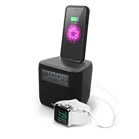 FM rádio a hodiny s duálnym budíkom vrátane lightning konektoru - FM rádio zároveň slúži ako nabíjacia stanica a stojan pre zariadenia s lightning konektorom cez USB port - FM rádio s možnosťou uloženia 6 staníc ako rýchla voľba - možnosť nastaviť 2 nezávislé budíky a tiež dobu opakovania pri odložení budíku - budenie nastavenou melódiou alebo rádio stanicou - technológia prehrávania hudby Reson8 - Aux-in jack pre prehrávanie hudba zo vstavaného reproduktora - automatická synchronizácia dátumu a času s pripojeným iPhone alebo iPad Technické parametre - nabíjanie: 1 A - napájanie: 100 – 240 V - batéria: CR2450 Rozmery: 165 x 147 x 127 mm Hmotnosť: 670 g