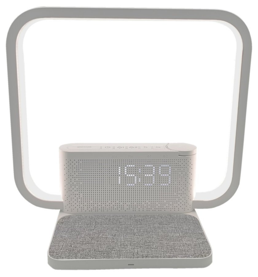 LED lampa, budík, Qi nabíjení 10W, relaxační zvuky, 3 úrovně stmívání, dotykové ovládání, 18W, bílá