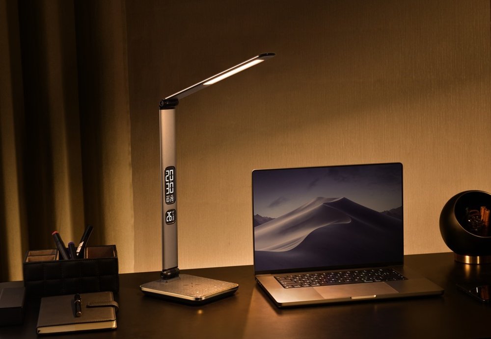 Dokonale zpracovaná elegantní kovová lampička s pokročilými funkcemi pro moderní pracovní prostředí.