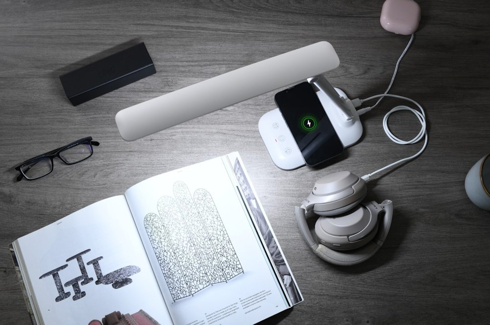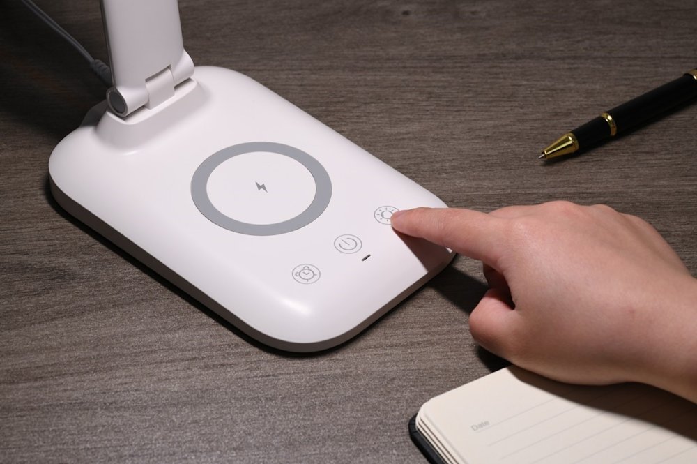 Multifunkční LED stolní lampa s integrovaným bezdrátovým nabíjením a USB výstupem pro moderní domácnost i kancelář.
