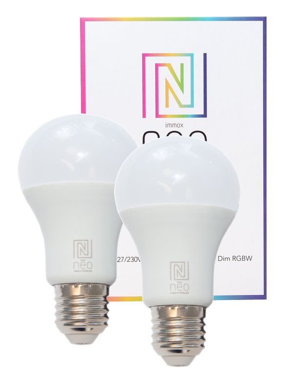 Žárovky IMMAX Neo pracují s bezdrátovou komunikační technologií ZigBee pro ovládání celé sítě domácích světelných zdrojů skrze dálkový ovladač (není součástí balení) či aplikaci v mobilním telefonu. Tyto žárovky jsou vhodné do systému osvětlení Immax NEO či Philips HUE. Balení obsahuje 2 ks LED žárovek.