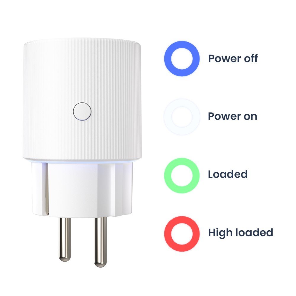 Elegantní chytrá Wi-Fi zásuvka s tenkým designem a inteligentním RGB podsvícením pro přehledné zobrazení aktuálního zatížení.
