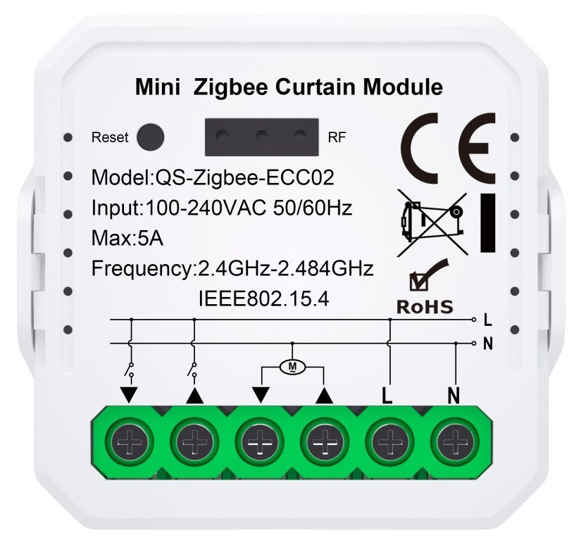 Kontroler, pro ovládání žaluzií a rolet, Zigbee 3.0, TUYA, IP20, bílý