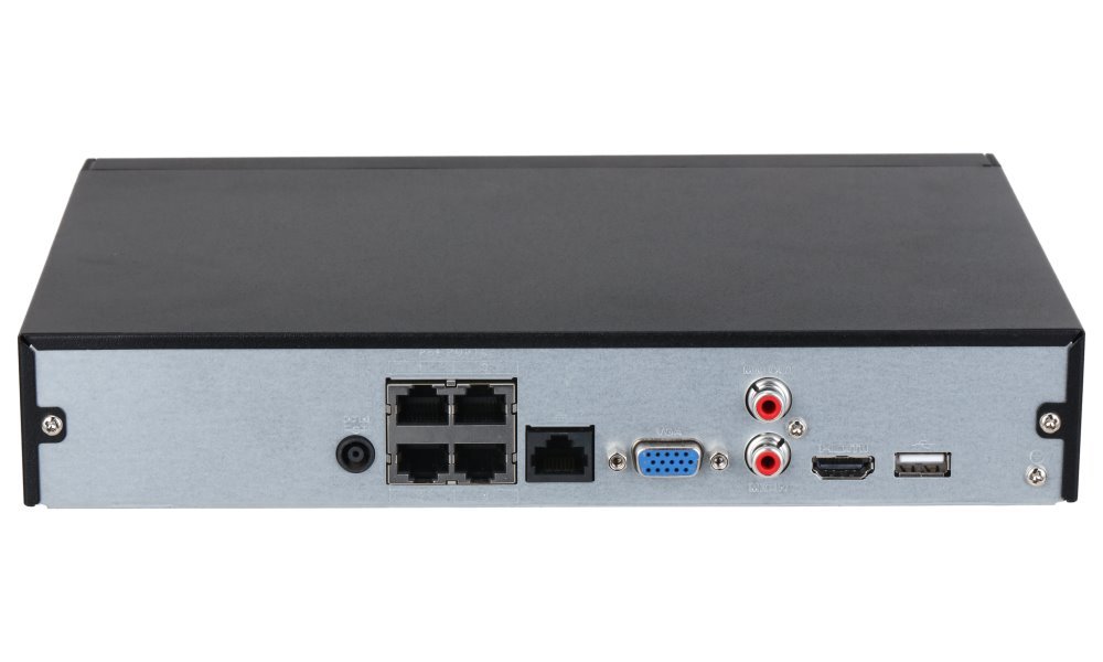 Porty: 1 x HDMI, 1 x VGA, 4 x RJ-45 (PoE 802.3af/at), 1 x RJ-45, 1 x audio vstup (RCA), 1 x audio výstup (RCA), 2 x USB 2.0