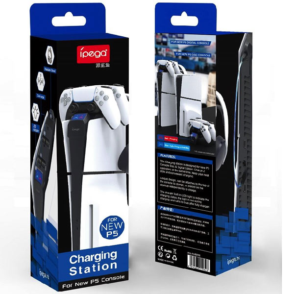 iPega P5S016 Duálna nabíjacia stanica s držiakom na slúchadlá a ovládače pre PS5 Slim, White PG-P5S016