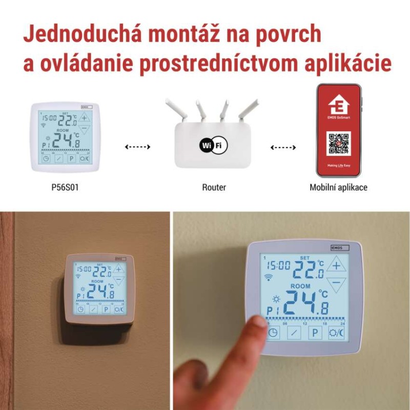 • Izbový programovateľný drôtový WiFi GoSmart termostat P56S01 8592920149140