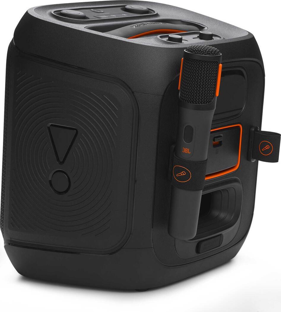 Ste pripravení spustiť šou? Chopte sa digitálneho bezdrôtového mikrofónu a staňte sa svojim vlastným moderátorom alebo hostiteľom karaoke! Môžete si taktiež prispôsobiť zvuk pomocou nastaviteľných ovládacích prvkov ozveny, basov a výšok, aby ste sa uistili, či budete znieť správne. Od otvorených striech až po preplnené pivnice, JBL PartyBox Encore 2 sa vie prispôsobiť vďaka svojej uchopiteľnej rukoväti a IPX4 dizajnu odolnému voči striekajúcej vode.