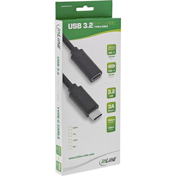 • Kábel USB 3.2 Gen 1x2, Typ C CM/CF 1,5m, 10Gbps, PD 60w 20V3A, čierny, predlžovací In35774