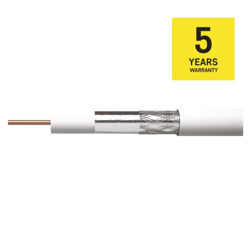 APE = vzduchové dielektrikum: nie|činiteľ skrátenia: 0,82|dielektrikum typ, priemer: FPE 4,6 mm|farba izolácie napájacích vodičov: neuvádza sa|farba plášťa kábla: biela|FPE = penové dielektrikum: áno|hmotnosť (kg/km): 40,5|impedancia: 75 Ohm|izolácia napájacích vodičov: neuvádza sa|izolačný odpor medzi jadrami pri 20 °C (MOhm/ km): 500|kapacita (pF/ m): 54|konštrukcia napájacích vodičov: neuvádza sa|materiál plášťa kábla: PVC|materiál tienenia: cínovaná meď (CuSn)|materiál vnútorného vodiča: meď (Cu)|max.rovn.odpor pri 20 °C (Ohm/km) - vnútorné jadro: 23,7|max.rovn.odpor pri 20 °C, (Ohm/km) - vonkajšie jadro: 38,2|max. útlm pri 20 °C (dB/100m) 1 000 MHz: 21|max. útlm pri 20 °C (dB/100m) 100 MHz: 7|max. útlm pri 20 °C (dB/100m) 10 MHz: 2|max. útlm pri 20 °C (dB/100m) 2 000 MHz: 31|max. útlm pri 20 °C (dB/100m) 450 MHz: 14,1|max. útlm pri 20 °C (dB/100m) 650 MHz: 17,5|max. útlm pri 20 °C (dB/100m) 860 MHz: 20,5|min. polomer ohybu jednorazový/ násobný: 30/60 mm|min. útlm odrazu pri 20 °C (dB) 10–300 MHz: 25|min. útlm odrazu pri 20 °C (dB) 300–600 MHz: 23|min. útlm odrazu pri 20 °C (dB) 600–900 MHz: 20|min. útlm tienenia (dB) 10 ~ 800 MHz: 75|montážna teplota: +5 °C až +60 °C|nebezpečné látky: žiadne|odolné UV: nie|odporúčané typy konektorov - F lisovacie: *K7220|odporúčané typy konektorov - F skrutkovacie: *K7331|PE = polyetylénové dielektrikum: nie|PES = vrstva fólie: neuvádza sa|počet drôtikov tienenia: 48× 0,12 mm|počet tienení: 2|pokrytie tienenia: 38 %|predajný obal: 100 m, cievka|priemer plášťa kábla: 6,5 mm|priemer tienenia: 48× 0,12 mm2|priemer vnútorného vodiča: 1,0 mm|prierez napájacích vodičov: neuvádza sa|skladovacia teplota: -20 °C až +75 °C|spôsob balenia - dĺžka: 100 m|spôsob balenia - ozn. metráží: 1–100 m|spôsob balenia - typ cievky: papierová cievka|tienenie I. fólie: 1× Al/PES|tienenie II. fólie: nie je|trieda reakcie na oheň: Eca|typ koaxiálneho kábla: CB100F|vhodné pre vonkajšie použitie: nie|zamýšľané použitie: vnútorné rozvody, univerzálny kábel|záručná doba: 5 rokov