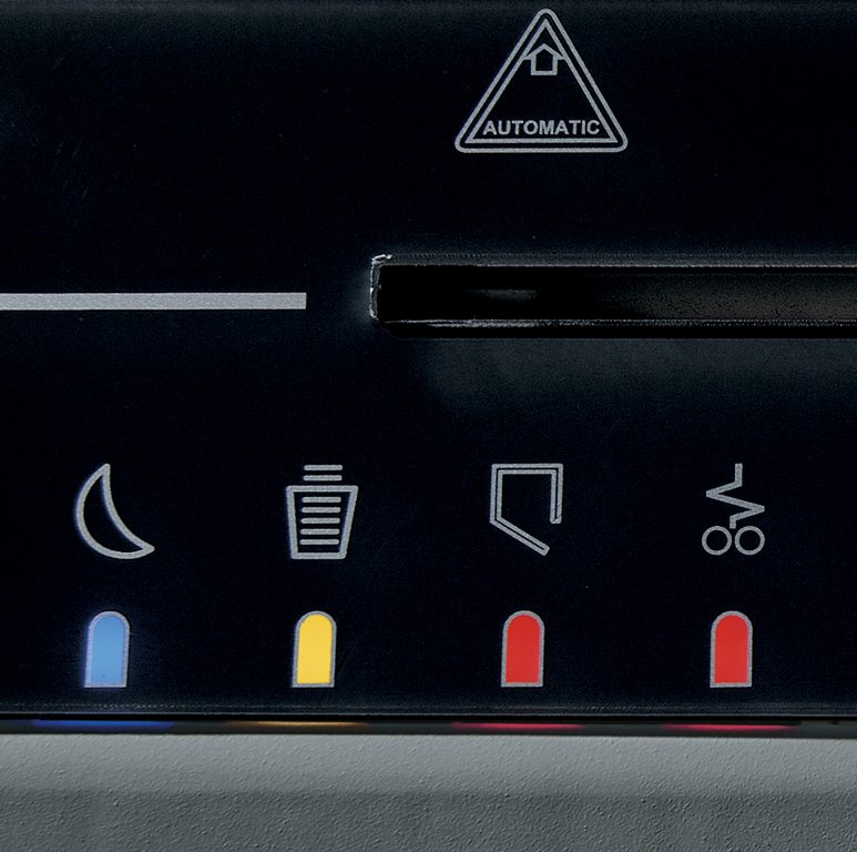 Skartovačka je vybavena systémem Shred Guard, který automaticky zastaví stroj při vložení velkých kovových předmětů. Osvětlený optický indikátor varuje obsluhu před odstraněním těchto předmětů pro ochranu řezných nožů.