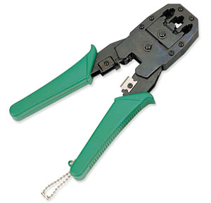 Krimpovací kleště pro upevňování konektorů RJ10,RJ11 a RJ12 na telefonní kabely, pro RJ45 na síťové kabely.