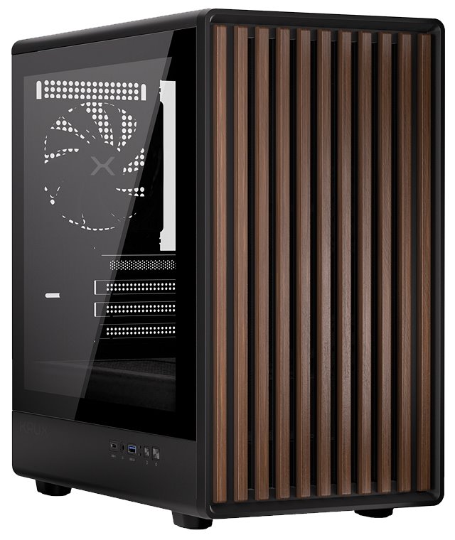 Kompaktní microATX obudova s elegantním designem a dřevěnými prvky. Podporuje až 8 ventilátorů, karty do 320 mm, chladič CPU do 175 mm. Hartované sklo, PWM ventilátor v balení, filtry proti prachu, boční panel I/O.