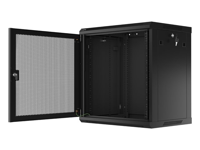 LANBERG Nástěnná jednodílná skříň 19", 12U/600x450, (v rozloženém stavu), perforované dveře, černá (RAL9004)