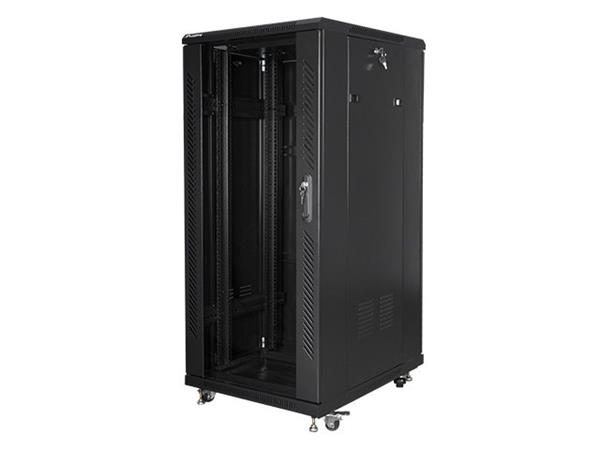 Volně stojící rozvaděč Lanberg FF01-6827-12B je řešení určené pro rozšíření sítí, instalaci kabeláže a zařízení o velikosti 19” s max. 800 kg. nosnost. Může být použit v sítích, serverovnách, malých a středních firmách a datových centrech, která potřebují hodně místa ve skříni pro síťová zařízení. Může také pracovat v systémech nízkého napětí, jako jsou sítě kabelové televize, poplašné systémy, systémy požární ochrany a systémy kontroly přístupu, CCTV a IP dohled. Konstrukce je vyrobena z vysoce kvalitní oceli válcované za studena, která se vyznačuje vynikajícím designem a vysokou kvalitou řemeslného zpracování. Skříň umožňuje plné nastavení hloubky vertikálních montážních lišt. Je vybaven předními dvířky z tvrzeného skla se zámkem a možností instalace na pravou nebo levou stranu. Má odnímatelné boční panely (včetně zámků) a zadní masivní ocelové dveře se zámkem.