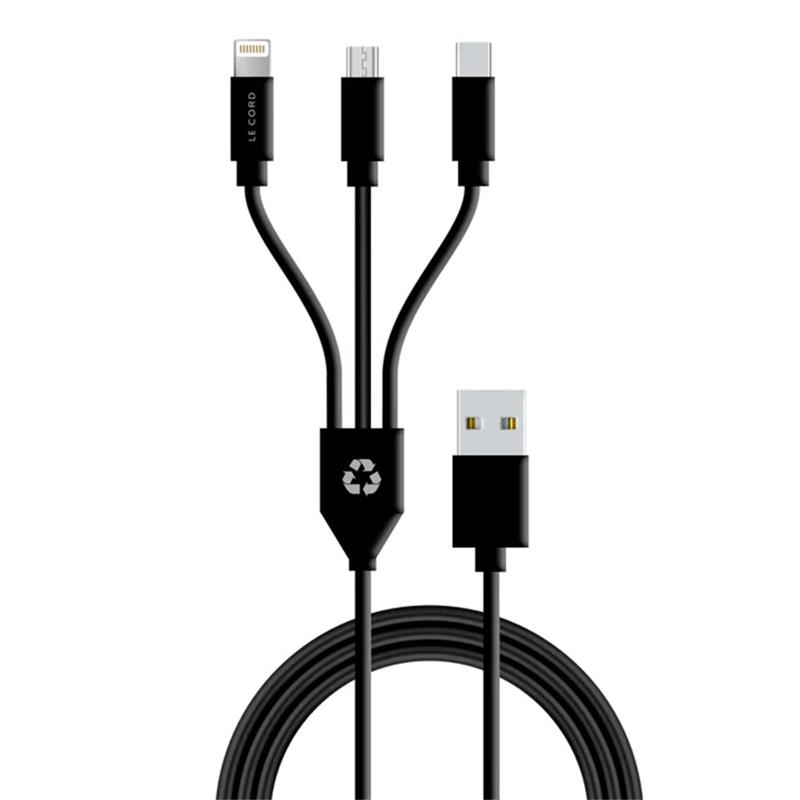 • Le Cord kábel USB-A 3 in 1 multi cable made of recycled plastics 1.2m - Black LC1391