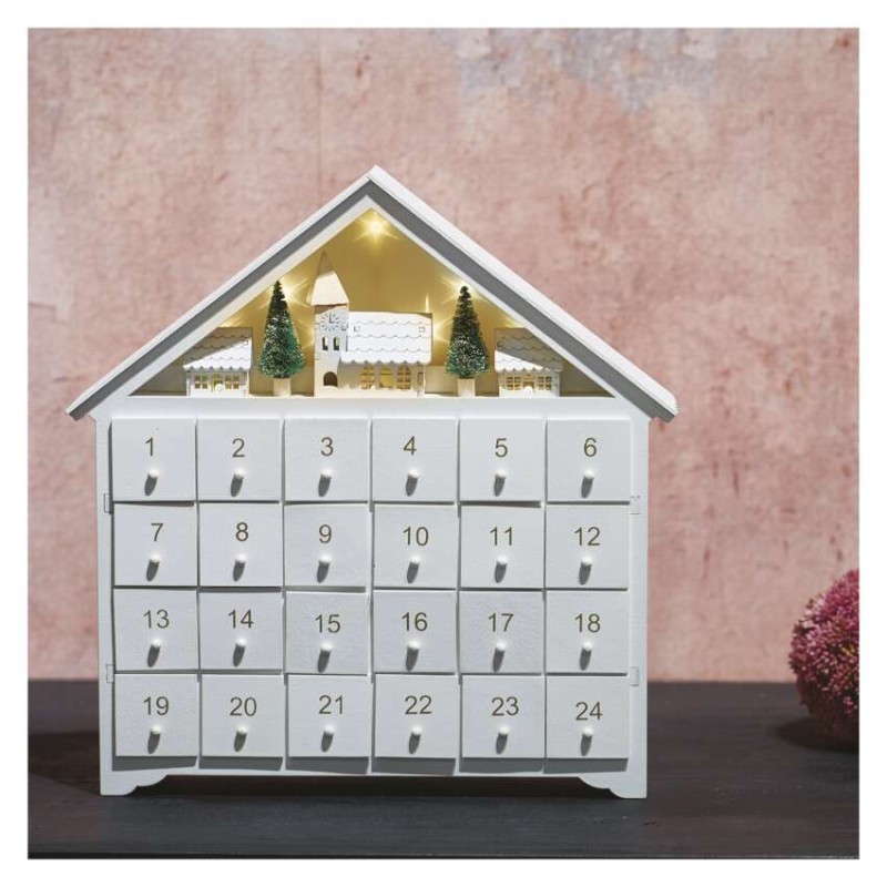 časovač: áno|diaľkový ovládač: nie|dĺžka prívodu: neuvádza sa|farba drôtu: neuvádza sa|farba svetla: teplá biela|krytie: IP20|materiál: drevo|počet LED: 8|použitie: vnútorné|predajný obal: 1 ks, krabica|príkon: 0,4 W|produkt: adventný kalendár|rozmer: 33 × 35 cm|typ napájania: batéria (2× AA)|vstupné napätie: neuvádza sa|výstupné napätie: 3 V DC|záručná doba: 2 roky|zdroj svetla: LED|životnosť: 10 000 hodín