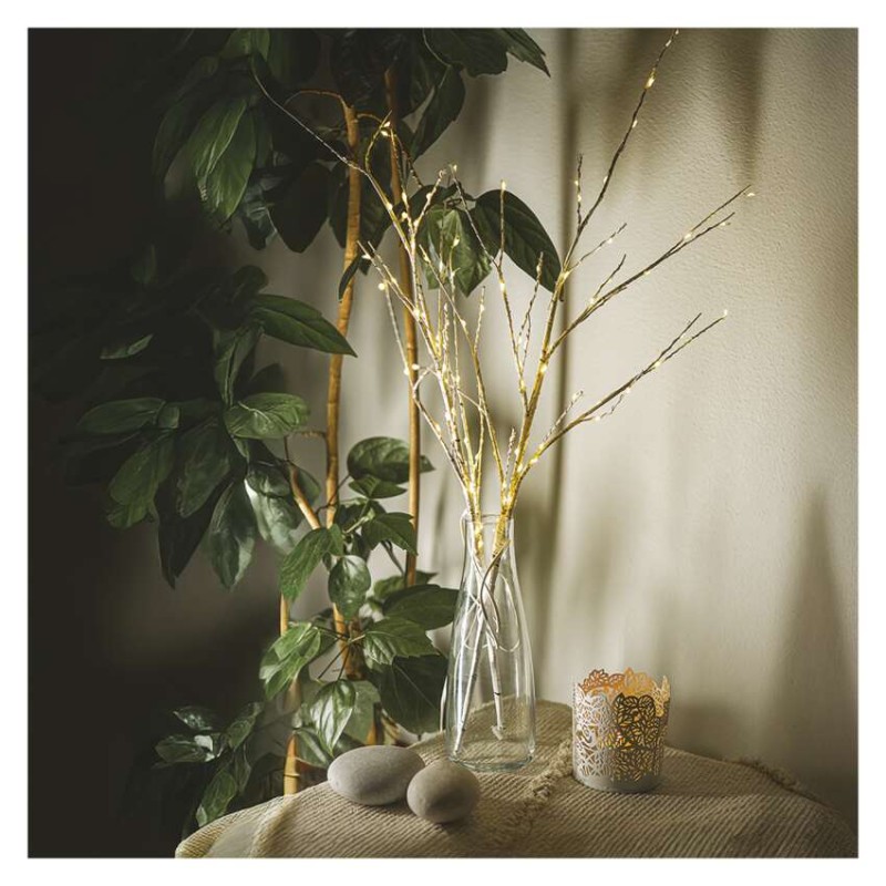 časovač: áno|diaľkový ovládač: nie|dĺžka prívodu: 0,5 m|farba drôtu: biela|farba svetla: teplá biela|krytie: IP44|materiál: plast|počet LED: 100|použitie: vonkajšie aj vnútorné|predajný obal: 1 ks, krabica|príkon: 1,5 W|produkt: vetvy|rozmer: 60 cm|typ napájania: batéria 3× AA (nie je súčasťou balenia)|vstupné napätie: –|výstupné napätie: 4,5 V DC|záručná doba: 2 roky|zdroj svetla: LED|životnosť: 10 000 hodín
