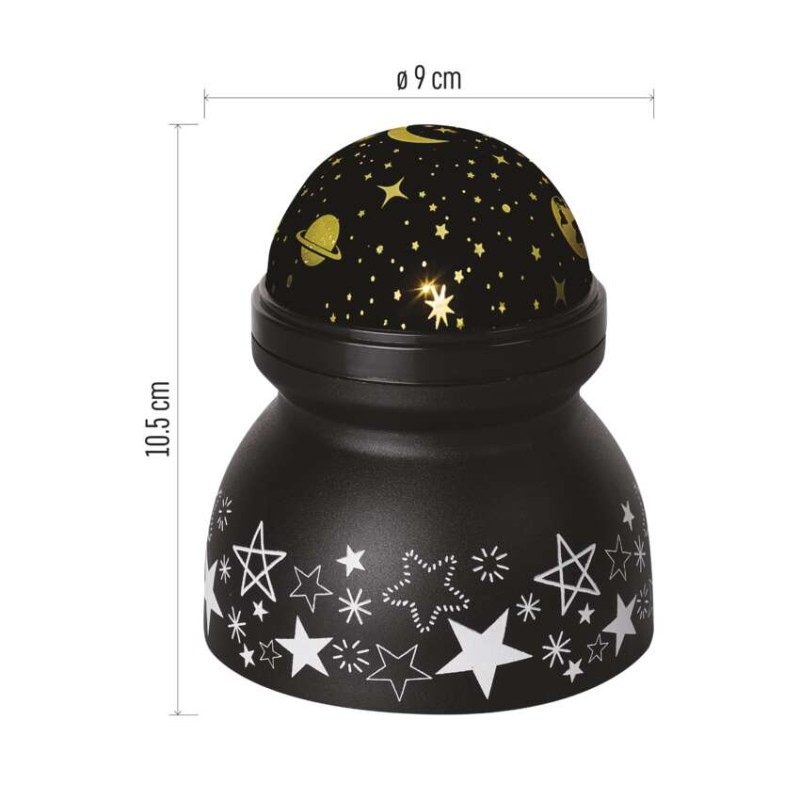 časovač: nie|diaľkový ovládač: nie|dĺžka prívodu: neuvádza sa|farba svetla: teplá biela|funkcia: rotujúce svetlo|krytie: IP20|materiál: plast|použitie: vnútorné|predajný obal: 1 ks, krabica|príkon: 2 W|produkt: projektor|technológia: LED|typ napájania: batéria (3× AAA)|vstupné napätie: neuvádza sa|výstupné napätie: 4,5 V DC|vzor: hviezdy|záručná doba: 2 roky|životnosť: 10 000 hodín