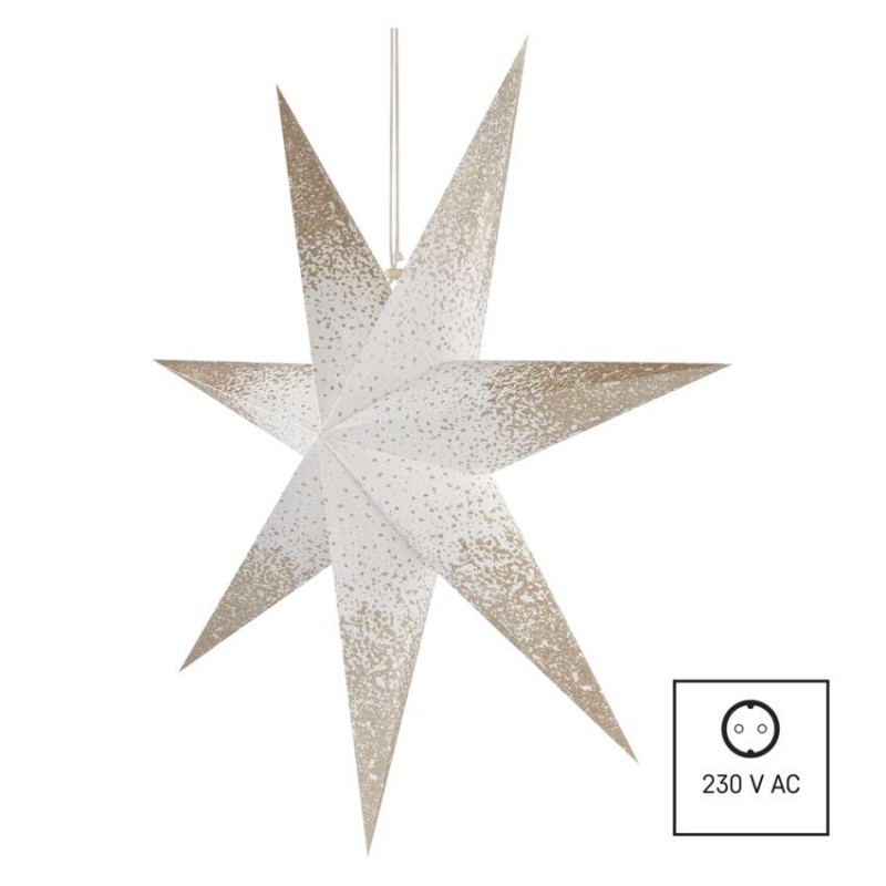 LED hviezda papierová závesná so zlatými trblietkami na okrajoch, biela, 60 cm, vnútorná 8592920099391
