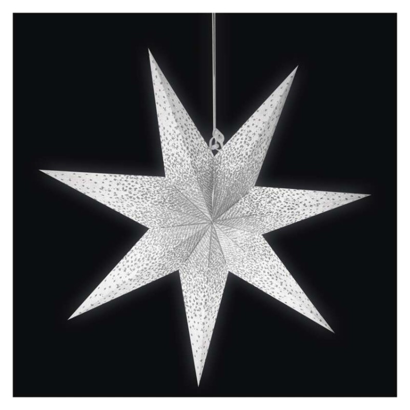 časovač: nie|diaľkový ovládač: nie|dĺžka prívodu: 3,2 m|farba drôtu: biela|farba svetla: neuvádza sa|krytie: IP20|materiál: papier|počet LED: neuvádza sa|použitie: vnútorné|predajný obal: 1 ks, krabica|príkon: neuvádza sa|produkt: hviezda|rozmer: 60 cm|typ napájania: sieť|vstupné napätie: 230 V AC|výstupné napätie: neuvádza sa|záručná doba: 2 roky|zdroj svetla: E14|životnosť: 10 000 hodín
