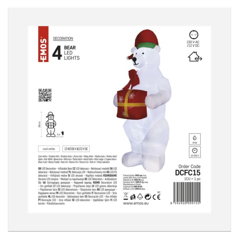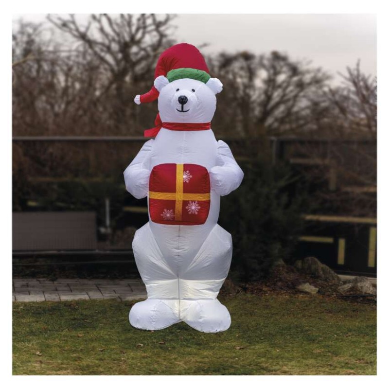 LED ľadový medveď s vianočným darčekom, nafukovací, 240 cm, vonk./vnút., studená biela 8592920099155