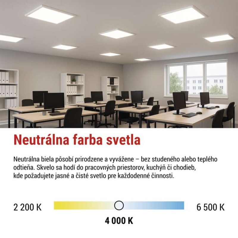 • LED panel BAXXO 60×60, štvorcový prisazeny biely, 36W neutr. biela 8592920143124
