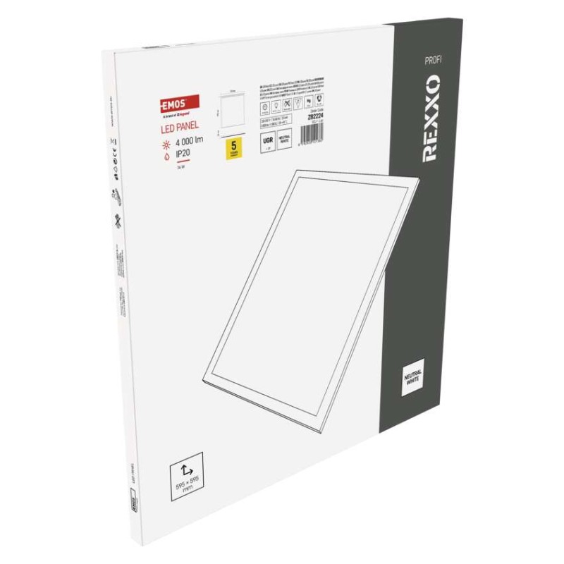 LED panel REXXO backlit 60×60, štvorcový vstavaný biely, 36W neutr.b. UGR 8592920121382