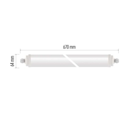 farba svetla: neutrálna biela|farba tela: biela|frekvencia: 50/60 Hz|index podania farieb (CRI): Ra >80|krytie: IP65|materiál: plast (PC)|materiál difúzora: plast (PC)|materiál spon: nemá spony|materiál tela: plast (PC)|možnosť stmievania: nie|náhrada za žiarovku: 2× 18 W CFL|napätie: 220–240 V|predajný obal: 1 ks, krabica|priebežná monáž: áno|príkon: 18 W|prúd: 85 mA|rozmer: 670 × 64 × 64 mm|rozsah pracovnej teploty: -20 °C až +40 °C|stupeň ochrany proti mechanickým nárazom: IK08|svetelný tok: 2 200 lm|svetelný tok v núdzovom režime: neuvádza sa|teplota chromatičnosti: 4 000 K|trieda ochrany: I|typ difúzora: mliečny|typ montáže: prisadená|typ riadenia: neuvádza sa|uhol vyžarovania: 120°|výdrž batérie: neuvádza sa|záručná doba: 5 rokov|záruka na batériu: neuvádza sa|zdroj svetla: LED|životnosť: 50 000 hodín