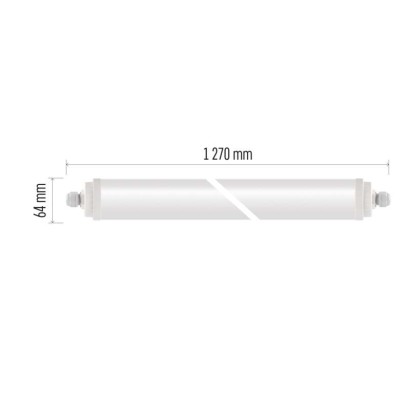 farba svetla: neutrálna biela|farba tela: biela|frekvencia: 50/60 Hz|index podania farieb (CRI): Ra >80|krytie: IP65|materiál: plast (PC)|materiál difúzora: plast (PC)|materiál spon: nemá spony|materiál tela: plast (PC)|možnosť stmievania: nie|náhrada za žiarovku: 2× 36 W CFL|napätie: 220–240 V|predajný obal: 1 ks, krabica|priebežná monáž: áno|príkon: 34 W|prúd: 150 mA|rozmer: 1 270 × 64 × 64 mm|rozsah pracovnej teploty: -20 °C až +40 °C|stupeň ochrany proti mechanickým nárazom: IK08|svetelný tok: 4 100 lm|svetelný tok v núdzovom režime: neuvádza sa|teplota chromatičnosti: 4 000 K|trieda ochrany: I|typ difúzora: mliečny|typ montáže: prisadená|typ riadenia: neuvádza sa|uhol vyžarovania: 120°|výdrž batérie: neuvádza sa|záručná doba: 5 rokov|záruka na batériu: neuvádza sa|zdroj svetla: LED|životnosť: 50 000 hodín